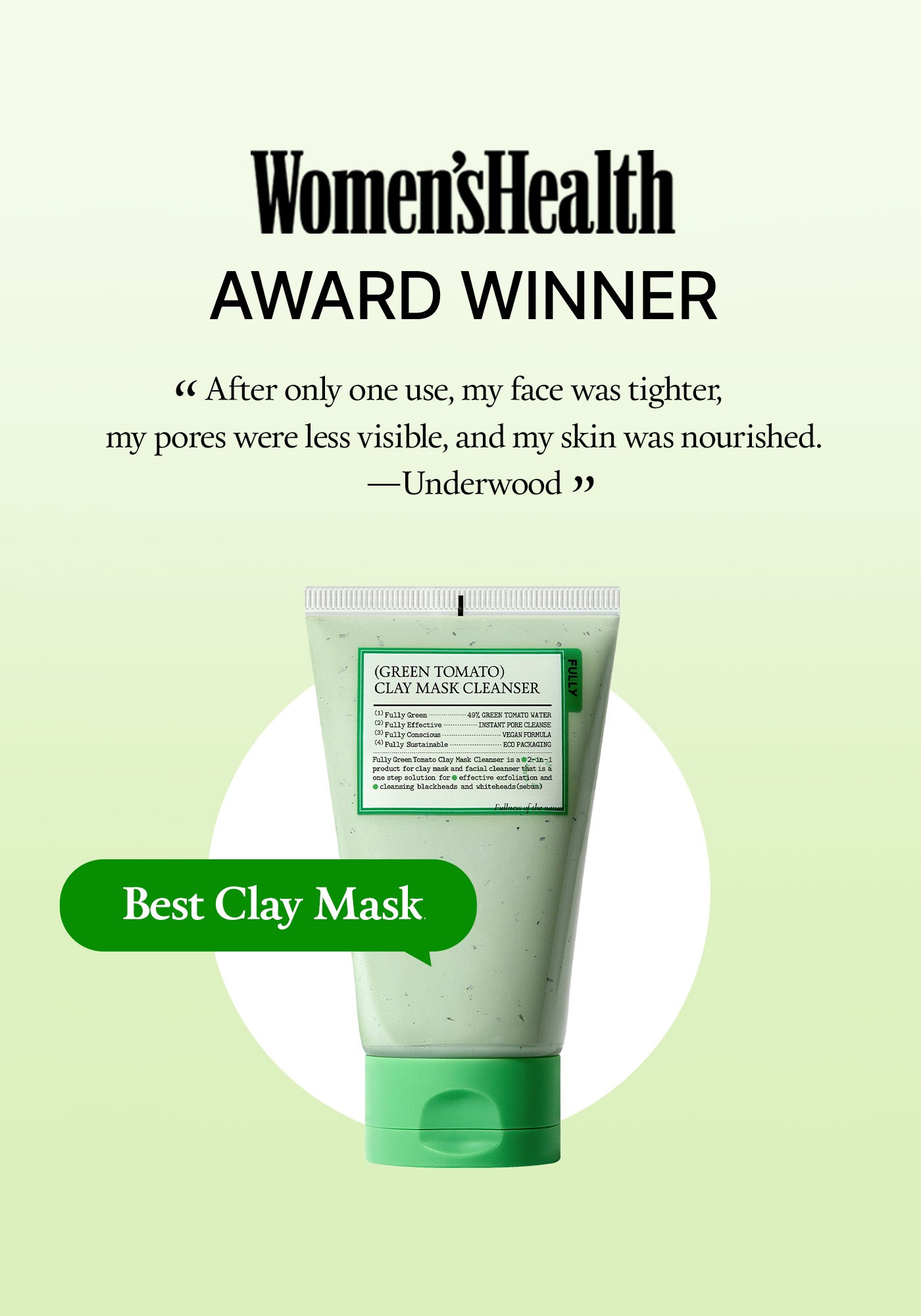Recognized by Women’s Health as a Best Clay Mask, FULLY’s Green Tomato Clay Pack Cleanser delivers powerful pore purification and visible texture improvement after just one use.