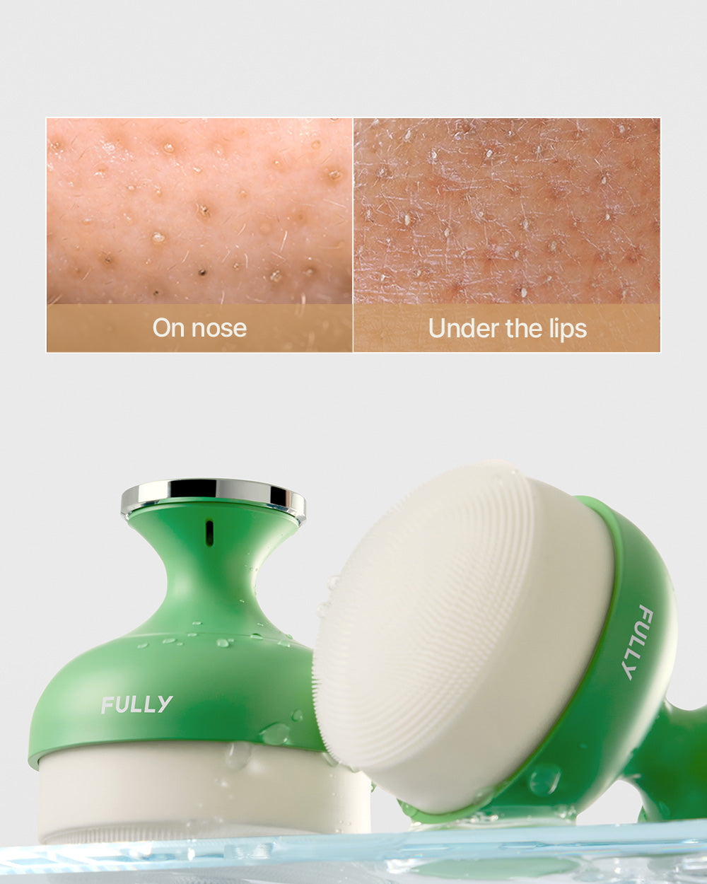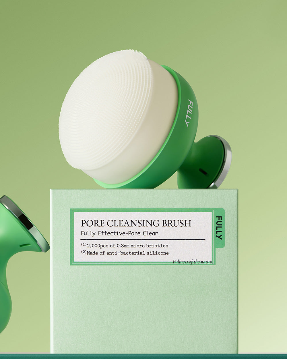 Experience the unique air-pressure flexibility of FULLY's silicone brush, with bristles that adjust their shape for an unparalleled cleansing experience—perfectly paired with the Green Tomato Clay Mask Cleanser for ultimate deep pore care.