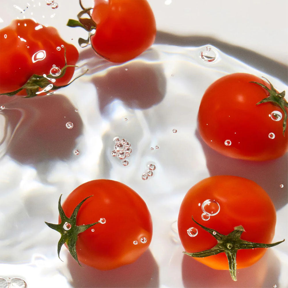 A dense red-tomato jam texture that softens, hydrates, and clarifies— all in one 2-in-1 vegan cleanser. The low-pH jam formula melts away impurities, dead skin buildup, and excess sebum, while lycopene-rich Red Tomato Extract visibly brightens dull tone and restores a fresh, healthy glow without stripping.